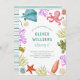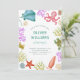 Cuidada Acuarela Bajo El Mar Ocean Kids Invitaciones De Cumpleaños. Esta invitación de cumpleaños de verano incluye hermosas criaturas acuáticas como pulpo, pez estrella, tortuga, etc. Los detalles de su fiesta se muestran en una tipografía simple pero divertida.