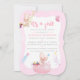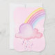 Personalizado de acuarela rosa rhino unicornio invitaciones a fiestas de bebés con mariposas, nubes, una estrella fugaz y un arco iris al revés.