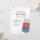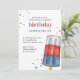 Este diseño presenta una acuarela de color azul rojo, un cuarto de verano del 4 de julio, un picnic al aire libre en el patio trasero, un cumpleaños patriótico por la independencia, una celebración divertida y caprichosa, un fiesta festivo de verano, una tipografía moderna minimalista simple, un dulce gusto de paladar, un colorido cumpleaños del 4 de julio, invitaciones para una fiesta de cumpleaños caprichosa
