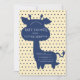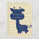 Silhouette de jirafa azul marino con detalles del evento dentro de la forma. Fondo amarillo pastel. El fondo polkadot azul marino se suma a la dulzura de esta invitación. Tan dulce como pueda ser. Una invitación perfecta para un evento perfecto. Estilo neutro de género. 100% de satisfacción del cliente en Zazzle cada día.