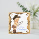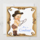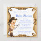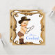 Adorable invitación a la ducha de bebé de vaquero marrón y azul con fondo de cuerda occidental. Esta dulce invitación a la ducha de bebé de vaquero se personaliza fácilmente para tu evento simplemente agregando los detalles del evento en el estilo de letra, color y texto de tu elección.