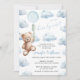 Invitación Cuidado Teddy Bear Azul Balón Bebé Ducha