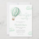 Esta encantadora invitación de baby shower presenta un globo aerostático y nubes adorables, junto con tipografía de letra elegante. Con el código QR de tu registro y una foto especial en el reverso. Diseñado por Thisisnotme©