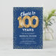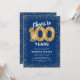 Eleva tu celebración de cumpleaños con nuestras elegantes invitaciones para una fiesta de cumpleaños número 100! Con un versátil fondo azul, brillo dorado, globos de helio dorados y un texto de cumpleaños número 100 que es fácil de personalizar! Agrega tu toque único a este día especial y haz que tus invitados anticipen un evento inolvidable.