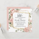 Invitación Cumpleaños 100 Rosa Floral Rosa Polvo