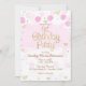 Invitaciones de Cumpleaños 1 Pink Gold Blanco Lunares y Corazones