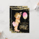 Invitación Cumpleaños 1er dorado con brillo para niñas