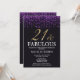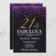 Invitación de cumpleaños 21. Veintiuno y Fabuloso. Negro Purpura y Dorado Brillante. Fiesta de Cumpleaños de Adultos. Para Hombres o Mujeres. Para una mayor personalización, por favor haga clic en el botón "Personalizar" y use nuestra herramienta de diseño para modificar esta plantilla.