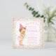Invitación de cumpleaños de niñas de 3 años con brillo rosa y dorado y cumpleañera dulce que lleva un sombrero de fiesta, pantalones de volantes y perlas en un bonito fondo de confeti rosa y dorado brillante. Puede personalizar fácilmente esta adorable invitación de cumpleaños de tercera de niña simplemente agregando sus datos en el estilo de fuente y color, y redacción de su elección. También puede cambiar el color de fondo.