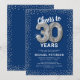 Eleva tu celebración de cumpleaños con nuestras elegantes invitaciones para una fiesta de 30 años. Con un fondo azul versátil, brillo plateado brillante, treinta encantadores globos de helio plateados y un texto de cumpleaños número 30 de moda que es muy fácil de personalizar. Agrega tu toque único a este día especial y haz que tus invitados anticipen un evento inolvidable.