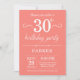 Invitación Cumpleaños 30 con Fondo Coral. Cumpleaños Adulto. Invitación Cumpleaños Hombre o Mujer. 13 15 16 18 20 21 30 40 50 60 70 80 90 100, Cualquier edad. Para personalizar aún más, haga clic en el botón "Personalizar" y use nuestra herramienta de diseño para modificar esta plantilla.