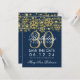Elegante diseño de "Fiesta de cumpleaños 30" con copos de nieve con brillo dorado y luces brillantes de bokeh sobre fondo azul marino (puede cambiar el color de fondo según sus necesidades), y texto personalizado con nombre y detalles. Fácil de usar y fácil de personalizar. ¡Ordene hoy mismo!