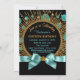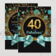 Invitación Cumpleaños 40 de mujer en azul turquesa y dorado c