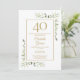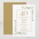Invitación Cumpleaños 40 Elegante Acuarela Dorada en Verde