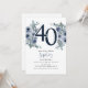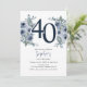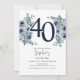 Invitación Cumpleaños 40 Elegante Floral Azul