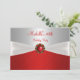 Cumpleaños 40 Elegante Plata Blanco y Rojo Brillante, Cinta Blanca y Joya de Piedra Roja. RSVP disponible. Personalice con sus propios detalles.