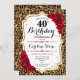 Invitación Cumpleaños 40 - Impresión de leopardo en rojo y do