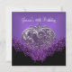 Invitación Cumpleaños 40 Lace Negro Plata Corazón Púrpura Int