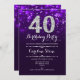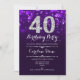 Diseño elegante blanco y morado con plateado de brillo falso. Cumpleaños de adulto. Cuenta con diamantes y fuente de escritura. Invitación de cumpleaños para hombres o mujeres. Perfecto para una fiesta de cumpleaños con estilo. Envíame un mensaje si necesitas más personalización.