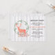 Una invitación de fiesta de cumpleaños con estilo boho. Diseñada con un diseño digital de acuarela. Una silueta de reno naranja pastel dentro de una corona de hojas herbales. Hongos y helechos del bosque a sus pies. Un patrón de árbol de abedul gris y blanco en el fondo.