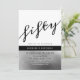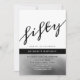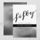 Sencilla, moderna, tipografía, fresca invitación de cumpleaños 50 para hombre con plateado metálico y negro.