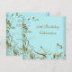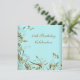 Invitación de cumpleaños número cincuenta elegante para mujer con flores azul teal y doradas y remolino de mariposa.