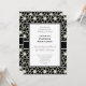 Elegante patrón retro art déco de ráfaga de estrellas sobre fondo negro. El patrón tiene el aspecto de hilo de lamé de oro blanco. Todos los textos son personalizables. Se puede hacer para adaptarse a cualquier ocasión que elija.