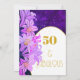 Invitación Cumpleaños 50 Purple Floral Gold Trendy