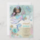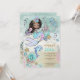 A las niñas les encantan las cosas mágicas. Esta invitación de cumpleaños 5 de sirena y delfín bajo el mar encantará a los invitados con un toque caprichoso, con sirena, delfín, tortuga y conchas marinas, en hermosos colores rosa, azul verde y púrpura pálido. Un mundo submarino de magia y misterio.