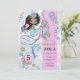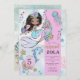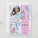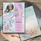 A las niñas les encantan las cosas mágicas. Esta invitación de cumpleaños 5 de sirena y delfín bajo el mar encantará a los invitados con un toque caprichoso, con sirena, delfín, tortuga y conchas marinas, en hermosos colores rosa, verde azul y violeta pálido. Un mundo submarino de magia y misterio.