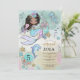 A las niñas les encantan las cosas mágicas. Esta invitación mágica de cumpleaños 5 de sirena y delfín bajo el mar deleitará a los invitados con un toque caprichoso, con sirena, delfín, tortuga y conchas marinas, en hermosos colores rosa, verde azul y violeta pálido. Un mundo submarino de magia y misterio.