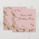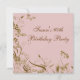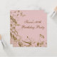 Invitación de cumpleaños número sesenta de mujer con remolinos de mariposa de flor rosa y dorada elegante.