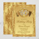 Invitación de cumpleaños 60 dorada con números de diamantes dorados y pancarta en un fondo damasco elegante con remolino dorado. Esta invitación de cumpleaños 60 dorada es fácilmente personalizable para su evento simplemente agregando sus detalles en el estilo de fuente, diseño y redacción de su elección. Este es un diseño impreso sin diamantes reales, cintas, etc.