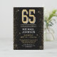 Esta fabulosa invitación para la fiesta de cumpleaños número 65 de hombres en negro y dorado que presenta el número 65 en dorado con fuentes modernas y lados de purpurina dorada sería perfecta para pedirle a la gente que se una a ti mientras celebras el cumpleaños número 65 del hombre de tu vida. Es tradicional y clásico, pero fresco, moderno y contemporáneo. Para ver tus invitaciones únicas, selecciona "Personaliza esta plantilla" y escribe tu información. ¡Es súper fácil!