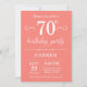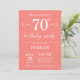 Invitación de cumpleaños 70 con fondo de coral. Cumpleaños de adulto. Invitación de cumpleaños para hombres o mujeres. 13 15 16 18 20 21 30 40 50 60 70 80 90 100, cualquier edad. Para personalizar aún más, haga clic en el botón "Personalizar" y use nuestra herramienta de diseño para modificar esta plantilla.