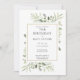 Con delicadas hojas de acuarela, esta elegante invitación de cumpleaños 70 se puede personalizar con la información especial de cumpleaños, con un fondo de salvia plateada en el reverso. Diseñado por Thisisnotme©