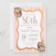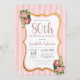 Invitación de Cumpleaños Floral Brillante Dorado Rayado Rosa Vintage Shabby Chic 80
