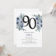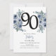 Invitación Cumpleaños 90 Elegante Floral Azul