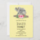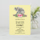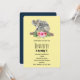 Una invitación de cumpleaños con un diseño adorable de acuarela. Mamá koala y su bebé. El bebé va montado en la espalda de la mamá. De pie en una rama de árbol. Un ramo de flores de hibisco debajo de ellos. Fondo amarillo de plátano.