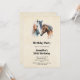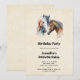 Una invitación de cumpleaños con un hermoso dibujo de acuarela. Con una pareja de caballos, marrón y blanco. Cabeza y cuello visibles con pintura goteando a lo largo de la base de su cuello. Vibra del suroeste.