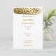 ELEGANTE INVITACIÓN DEL PARTIDO DE TODAS LAS OCASIONES PARA CUALQUIER PERSONALIZADO DE EDAD Y PERSONALIZABLE CON UNA MEZCLA DE NEGRO BLANCO Y ORO EN UNA IMPRESIÓN LEOPARD ELEGANTE CON FONDO BLANCO Y COMPLEMENTANDO EL LADO INVERSO