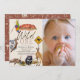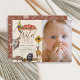 Esta linda invitación de foto de "Salvaje" 1er cumpleaños cuenta con Uluru/Ayers Rock, una señal de cruce de canguros, animales australianos, como un koala, canguro, diablo de Tasmania, ornitorrinco, lorikeet de arcoíris y escarabajo de Navidad. El reverso presenta un fondo marrón rojizo con motivos australianos. Personalízalo para tus necesidades. Puedes encontrar productos relacionados en mi tienda.