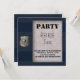 Invitación moderna con patrón azul y tela de policía y placa de policía con edad para una fiesta con temática de policía. Una excelente invitación para una fiesta de niño con temática de policía. O fiesta de jubilación de policía.