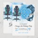 Plantilla de invitación de cumpleaños azul con diseño de videojuegos, invitación de fiesta de juegos, invitación de silla de jugador imprimible, materiales imprimibles de juegos
