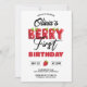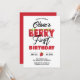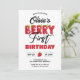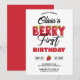 Celebra el primer cumpleaños de un pequeño con esta adorable invitación temática de fresa! Con letras de fresa lindas que deletrean "Berry Primero" y una dulce ilustración de fresa, esta invitación es perfecta para una fiesta de verano.