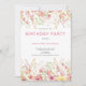 Invitación de cumpleaños floral rosada de moda. Es fácil cambiar el texto. Diseño de flores silvestres acuáticas de verano de bonito.