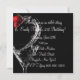 Invitación de cumpleaños número 21 y cualquier número con diseño crujiente en negro y blanco con fresa roja y copa de martini. Esta bonita invitación de cumpleaños de martini rojo y negro se personaliza fácilmente para su evento añadiendo los detalles del evento, estilo de fuente, tamaño y color de la letra, y redacción.