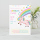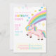 el diseño muestra una invitación de cumpleaños bonita y colorida para los niños con unicornio, arcos coloridos, estrellas, etc. el diseño será ideal para el cumpleaños de cualquier niño.