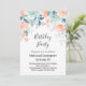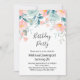 Invitación de cumpleaños con un elegante borde floral. Flores y hojas en rosa y verde.