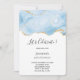 Invitación de cumpleaños con un hermoso diseño de ágata azul helado con acentos de brillo dorado falso.